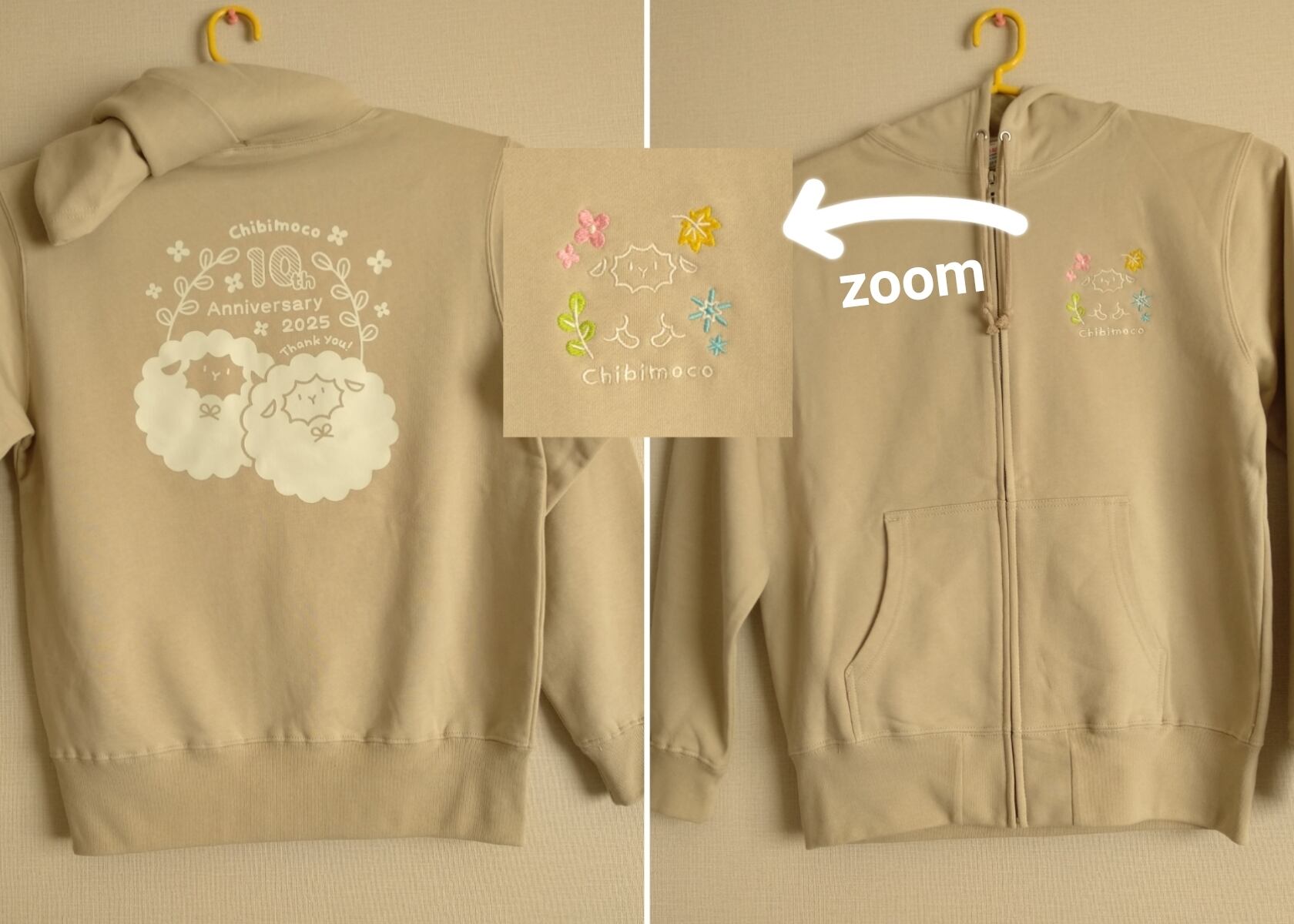 ちびもこさんが生まれて10th記念に作ったジップパーカーです。